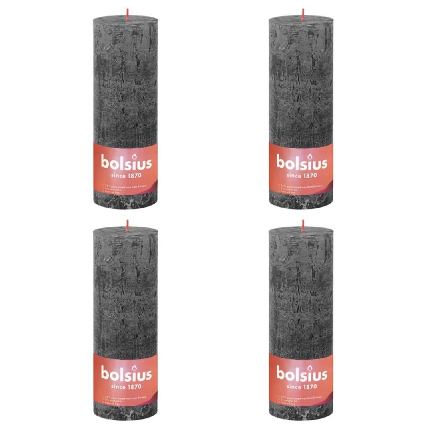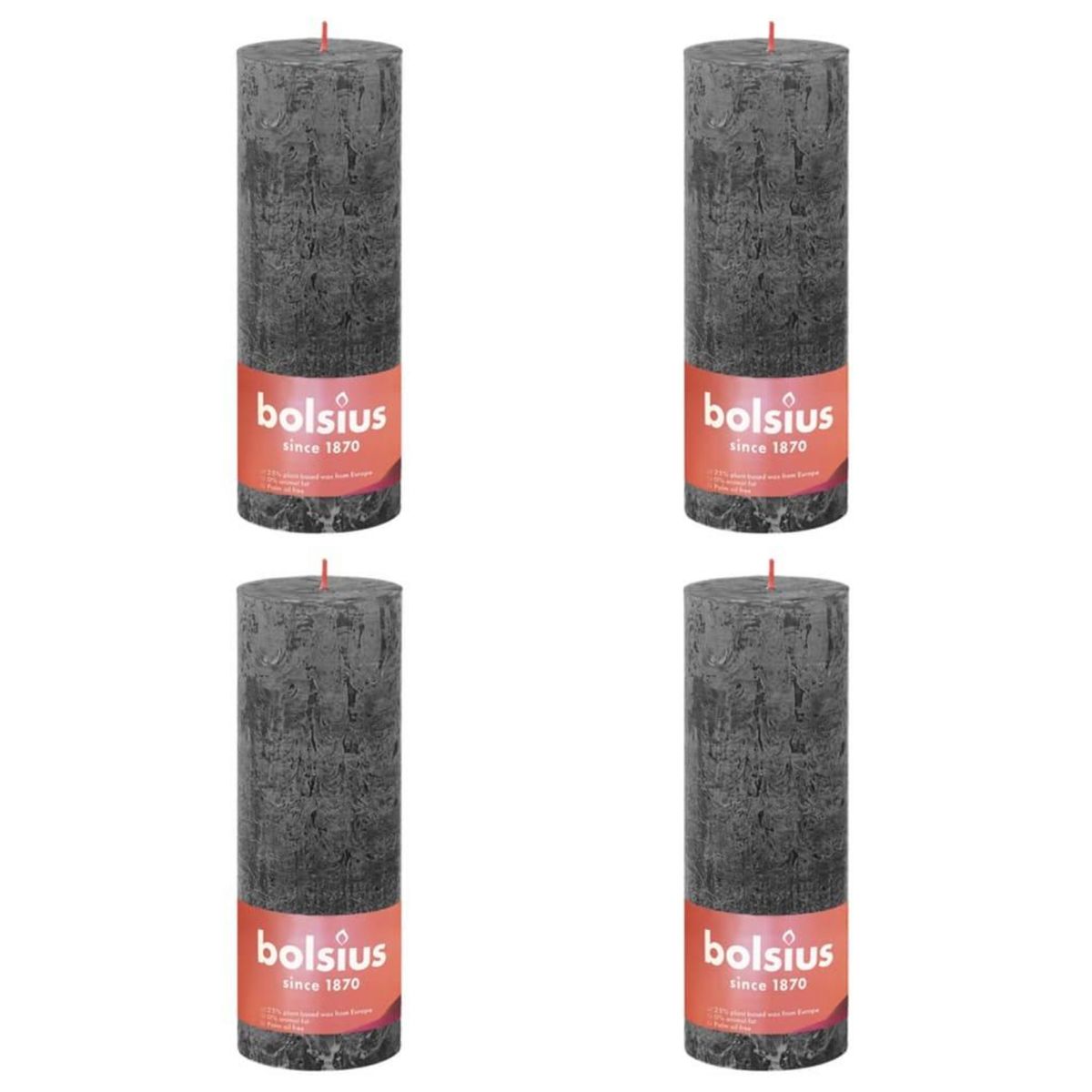 Bolsius Bougies pilier rustiques Shine 4 pcs 190x68 mm Gris orageux
