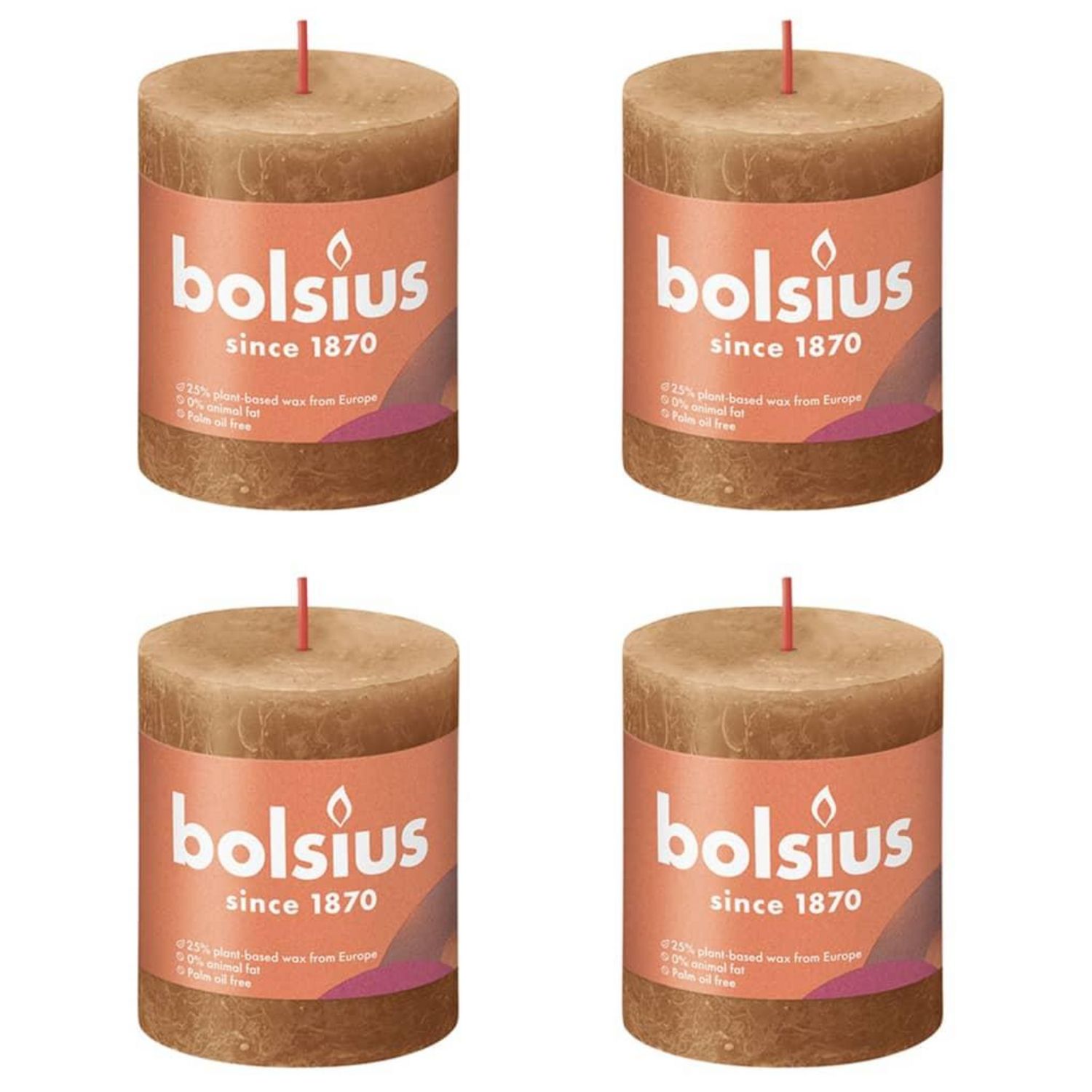 Bolsius Bougies pilier rustiques Shine 4 pcs 80x68 mm Marron epice