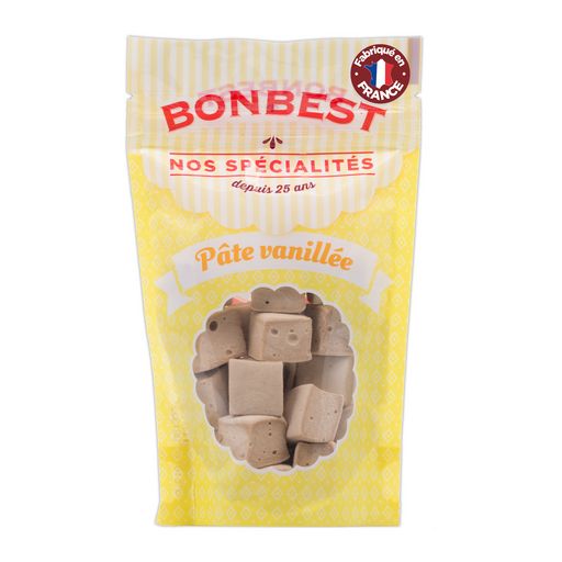 Une pâte moelleuse de fabrication artisanale au subtil mélange de réglisse et de vanille.