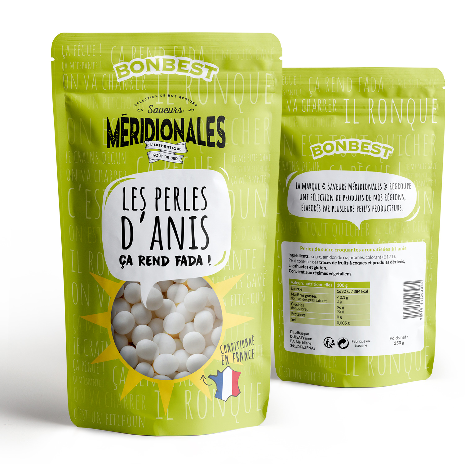 Perle d'Anis 250 g Des perles de sucre croquantes aromatisées à l'anis. La marque "Saveurs Méridionales" regroupe une sélection de produits de nos régions, élaborés par plusieurs petits producteurs.
