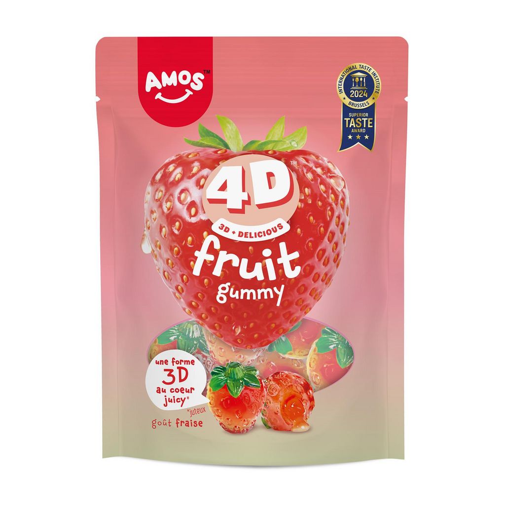 un bonbon au goût fruité, avec un cœur juicy et à la forme 3D ciselée et incroyable de réalisme. un goût fraise incroyable. A remporté le superior taste award 2024, catégorie 3 étoiles.