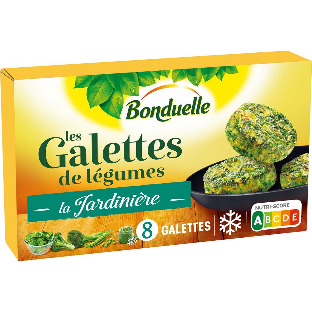 Découvrez cette délicieuse recette de galette de légumes Bonduelle. Un trio de légumes verts délicatement choisi comme l’épinard, le brocoli et le pois doux, relevé par une subtile touche d'ail des ours. Une astuce pour que vos enfants mangent des légumes verts et s'initient à de nouvelles saveurs grâce aux galettes de légumes Bonduelle ! Galettes de légumes préfrites surgelées