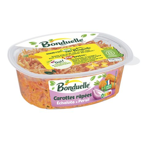 Ingrédients:Carottes 77%, eau, échalote 4.5%, huile de colza, vinaigre d'alcool, persil 0.8%, sel, sucre, MOUTARDE de Dijon, arômes naturels (BLE), amidon modifié de pomme de terre, antioxydant : acide ascorbique, épaississants : gomme de xanthane et gomme de guar, purée d'ail. Fabriqué dans un atelier utilisant également : lait, oeuf, céleri, poisson, crustacé, fruits à coque, soja