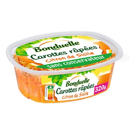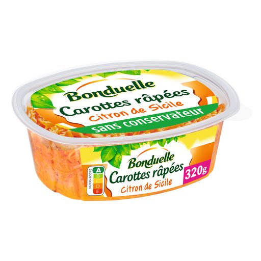 Avec des brins finement râpés et un goût intense de citron, les carottes râpées au citron de Sicile Bonduelle sont délicatement assaisonnées. Leur texture croquante et leur goût unique sont ainsi préservés, pour faire de leur dégustation un moment de plaisir sain et savoureux.