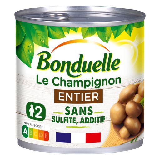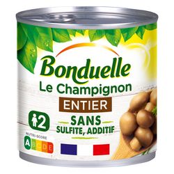 Les champignons de Paris Entiers Bonduelle sont sans sulfite, sans additif et sans conservateur pour une composition simple et naturelle: champignons, eau et sel ! Une jolie forme bien ronde, bien lisse et croquante, idéale pour décorer et accompagner tous vos plats.