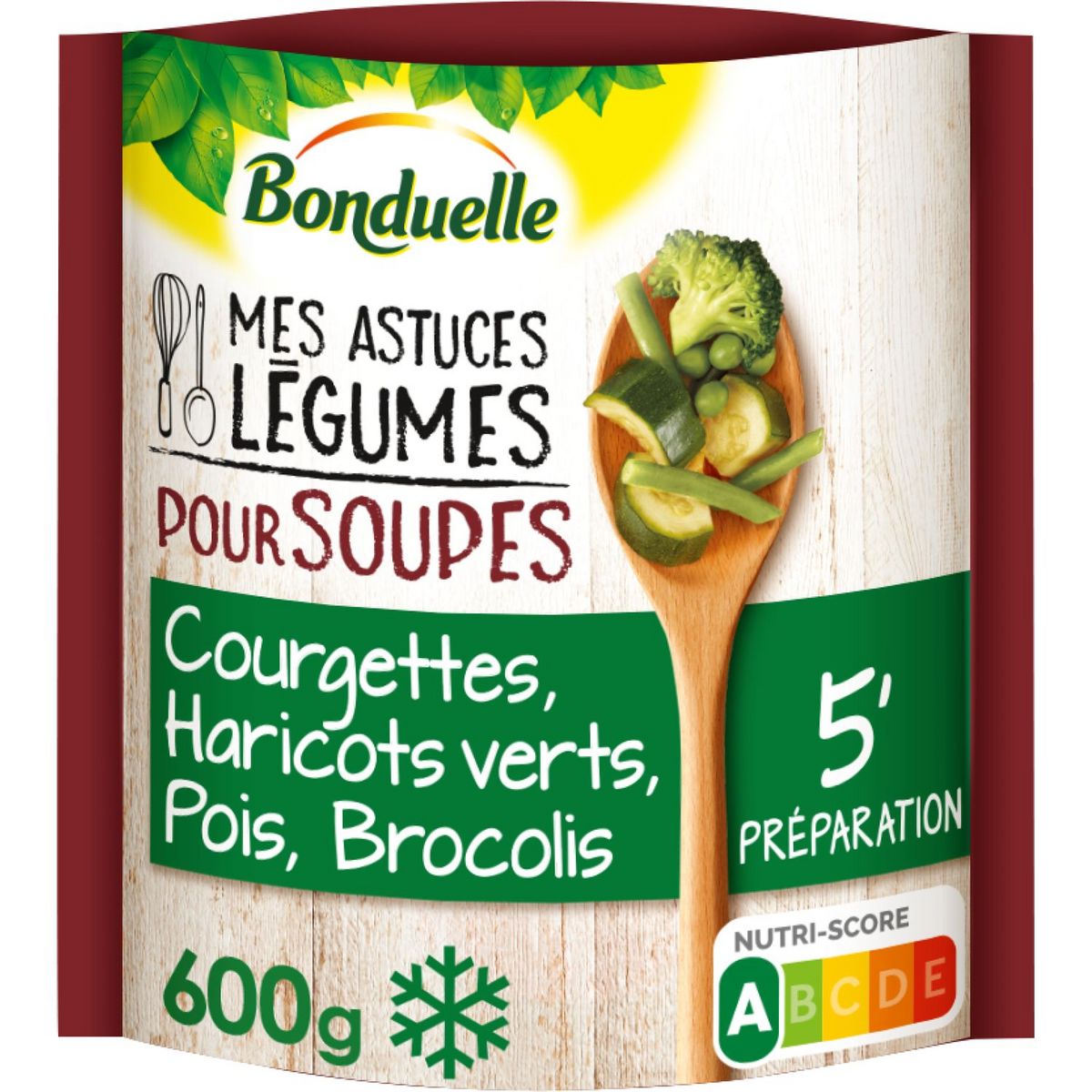 Découvrez Mes Astuces Légumes pour Soupe courgettes, haricots verts, pois et brocolis Bonduelle. Des légumes natures sélectionnés, précuits et prédécoupés en beaux morceaux comme à la maison. Grâce à l'expertise Bonduelle, cuisinez une délicieuse soupe en seulement 3 minutes de cuisson. Mélange de légumes surgelé