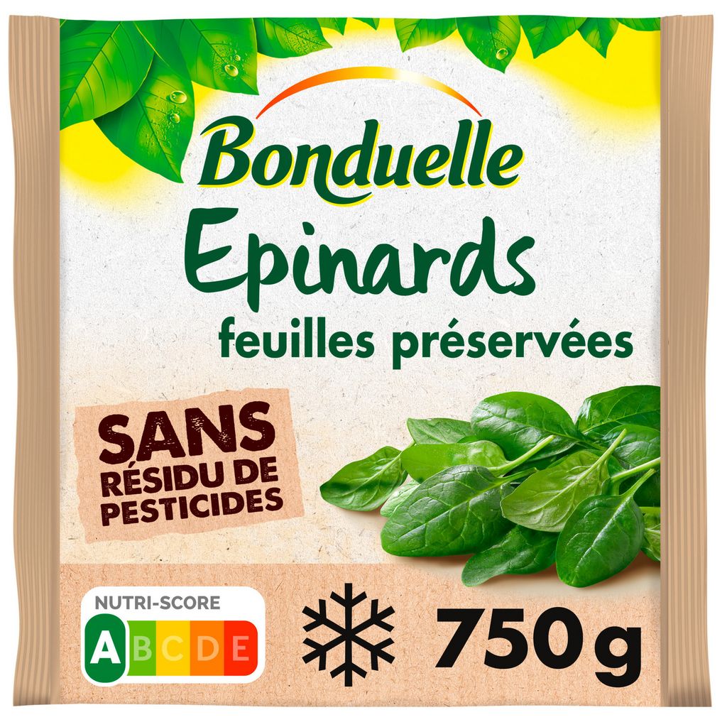 Les épinards retrouvent un aspect de légumes frais à la cuisson. Saveur préservée.