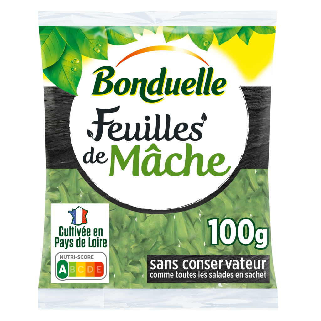 Prête à l'emploi La Feuille de Mâche Bonduelle, une variété exclusive et une récolte feuille à feuille pour le meilleur de la mâche.
