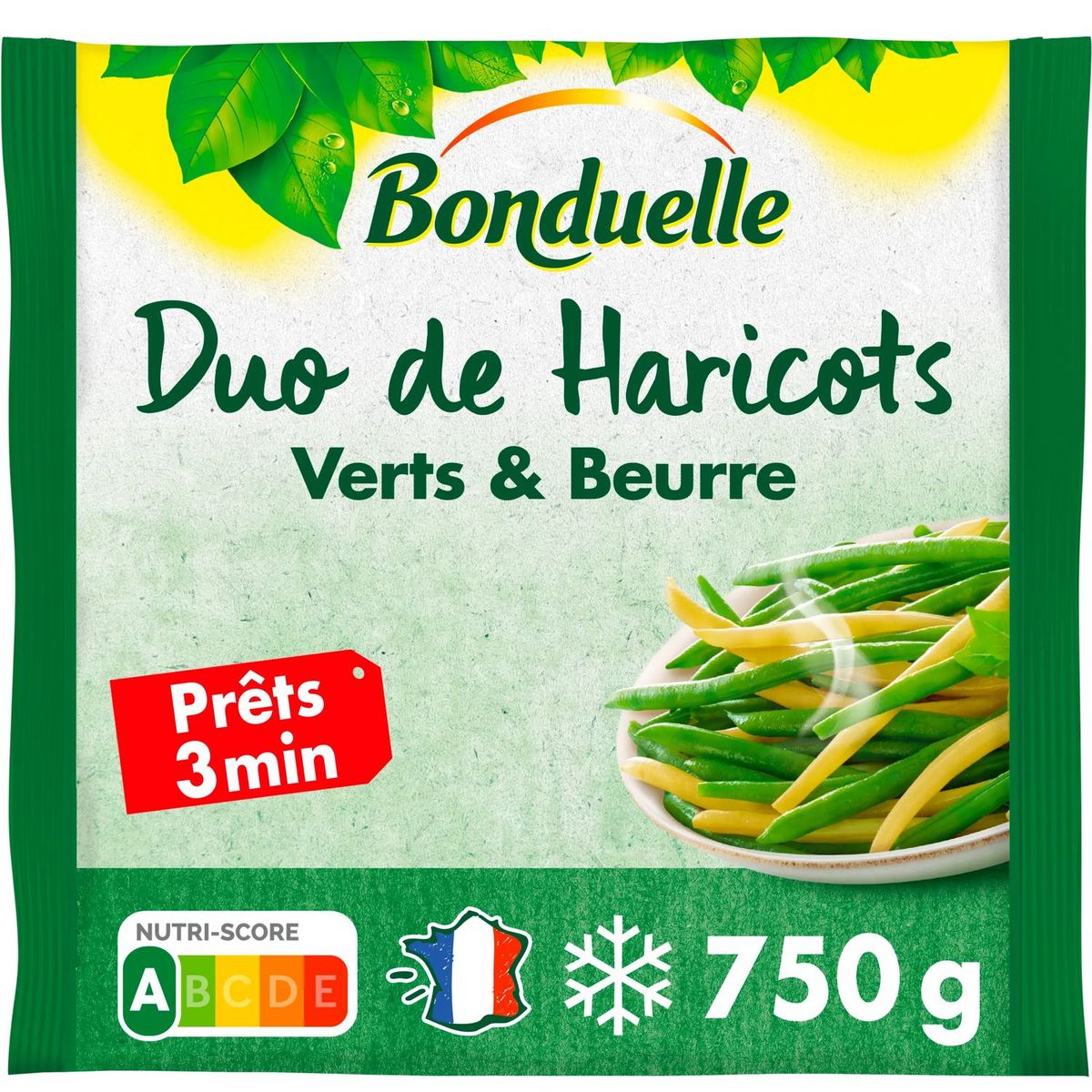 Précuits vapeur : Retrouvez dans votre assiette le goût et les qualités au plus proche des légumes frais en seulement 3 minutes. Ces haricots verts et haricots beurre ont été cultivés en France. Ils ont été cueillis, précuits à la vapeur et surgelés dans la journée. Pour la fabrication de nos emballages, nous utilisons deux fois moins d'encre et 25% de plastique en moins.