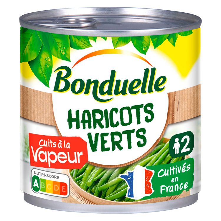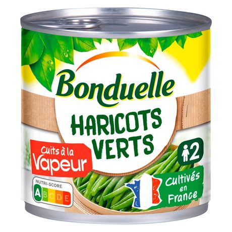 Cultivés en France, nos haricots verts sont soigneusement sélectionnés, cueillis à maturité et cuits à la vapeur dans très peu de jus pour conserver toutes les qualités du légume.