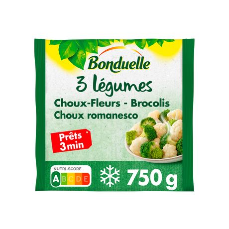Ingrédients : Ingrédients : Mélange de légumes : choux fleurs 50%, brocolis 40%, choux romanesco 10% Peut contenir du CELERI