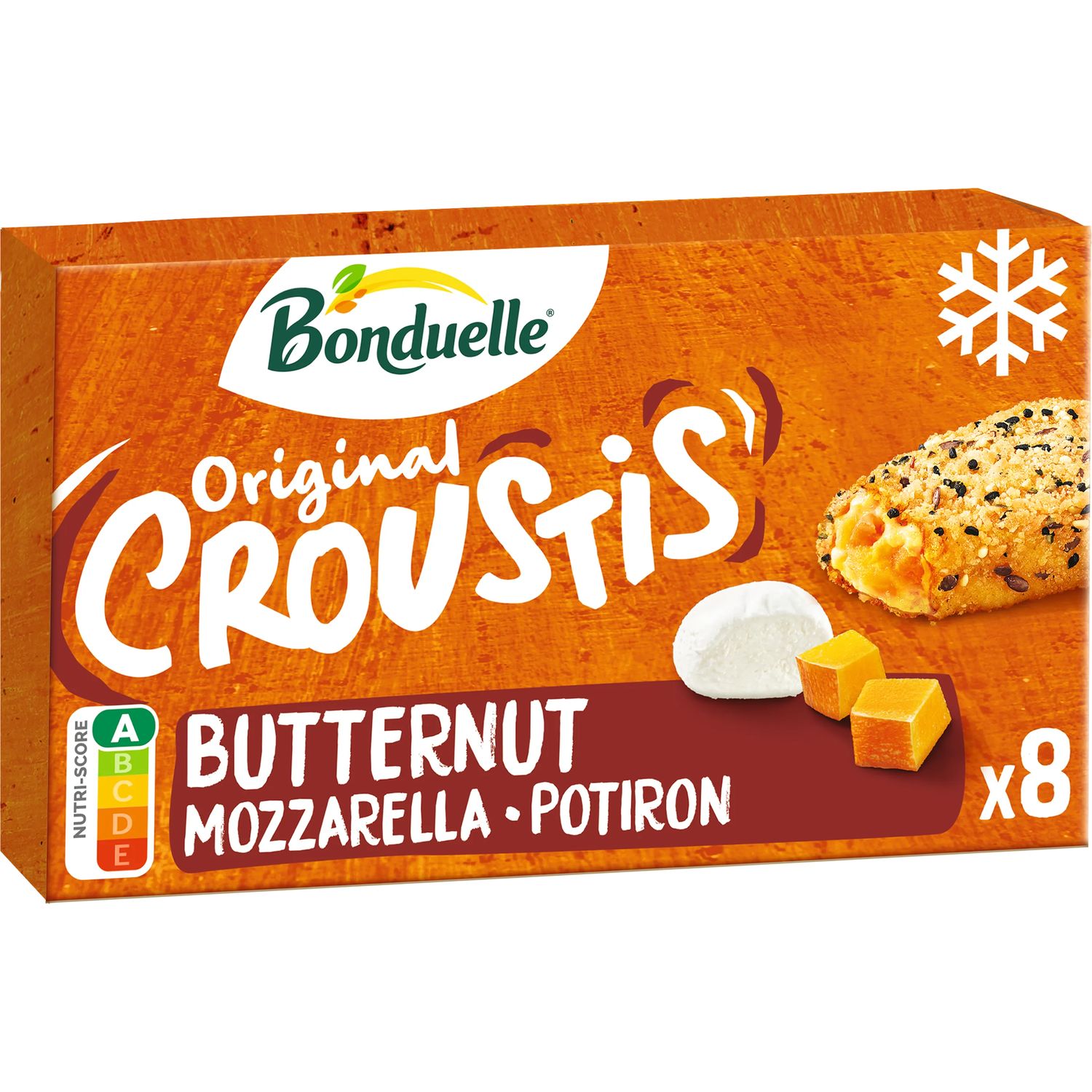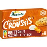 Ingrédients : Ingrédients : Courge butternut 22.8%, potiron 22.8%, panure (chapelure (farine de BLE, levure, sel), graines de millets décortiquées, graines de citrouille, graines de lin brun 0.4%, graines d'oignon noir, huile de colza), carottes 14.9%, huile de tournesol, eau, MOZZARELLA (LAIT de vache pasteurisé, sel, ferments lactiques, coagulant) 4.1%, farine de maïs, farine de BLE, blanc d'OEUF en poudre [issu de poules élevées en plein air], sel, ail déshydraté, curcuma. Peut contenir : CELERI