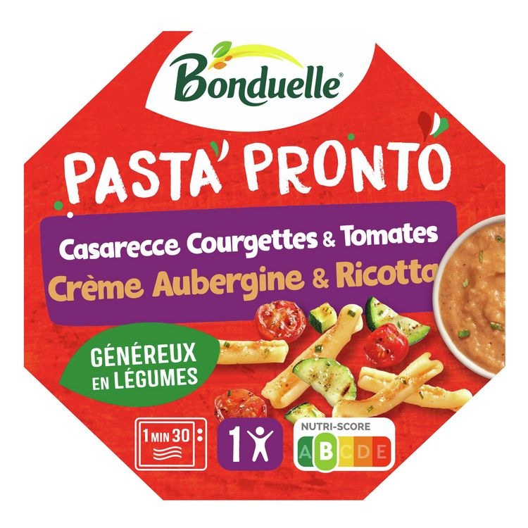 Pasta pronto pâtes casarecce aux courgettes tomates crème d'aubergine et ricotta