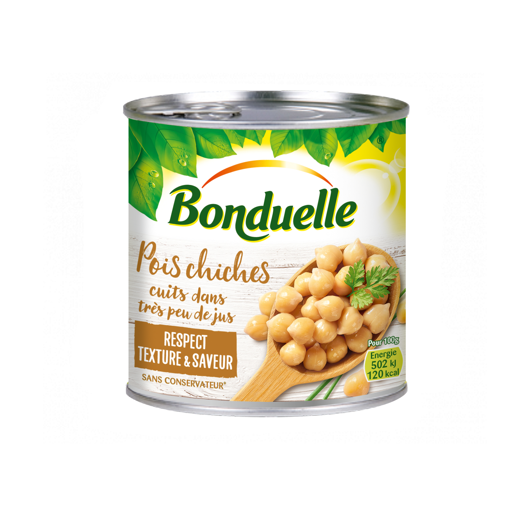 Bonduelle a développé une gamme de pois chiches cuits dans très peu de jus qui permet de réaliser de nombreuses recettes, salades ou plats chauds. Conditionnés en boîtes de conserve, ces pois chiches sont cuits à la vapeur afin de préserver les saveurs et la texture de la légumineuse. Finies les corvées du trempage et de la longue cuisson, les pois chiches sont prêts à être cuisinés dès l'ouvertu