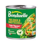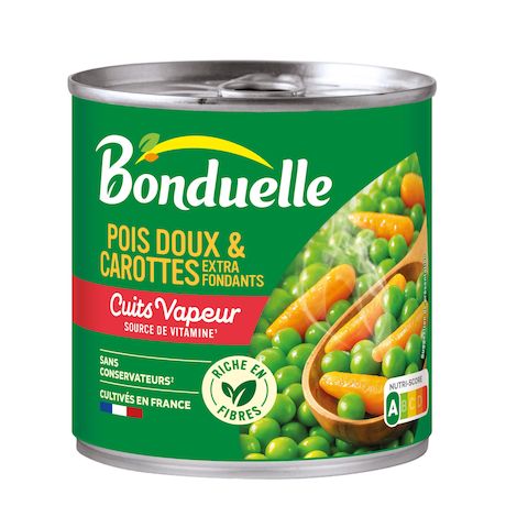 Légumes en proportion variable (Petits pois doux , carottes), eau, sel.