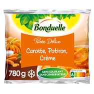 Ingrédients : Ingrédients:Carottes 49%, potiron 26%, pommes de terre 15%, maïs doux en grains 5%, CREME fraîche 2%, sucre, sel, persil, extrait de levure. Peut contenir du CELERI