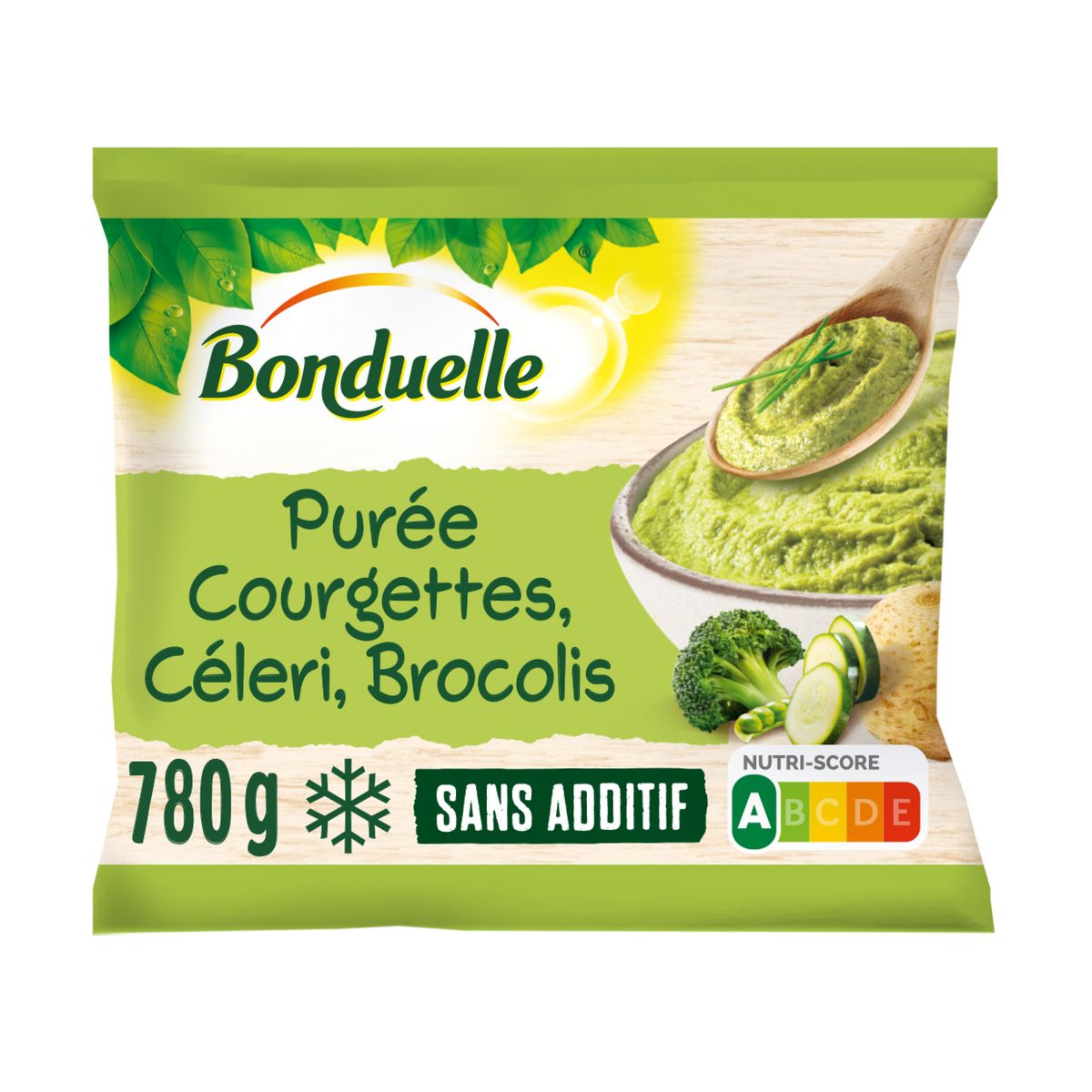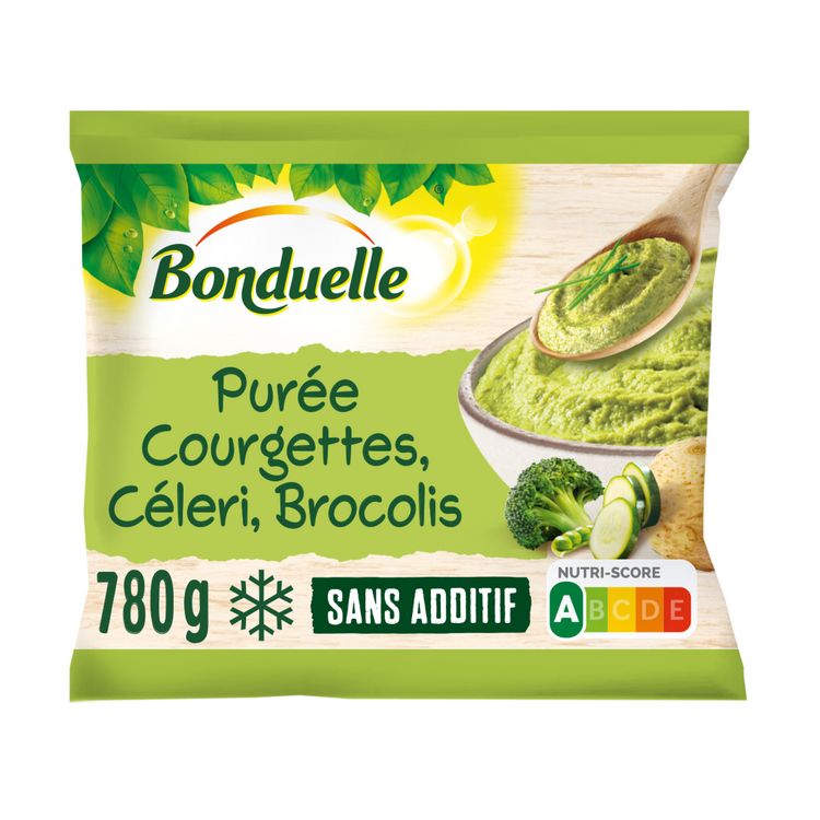 La purée Délice Vert est un mélange gourmand de courgettes, de brocolis et de pois, délicatement relevée par la présence du céleri. Le bon goût de cette purée séduira toute la famille. Consommer 150g de purée Bonduelle, contribue à diversifier les apports en légumes et représente 1 des 5 portions de fruits et légumes recommandées par jour.