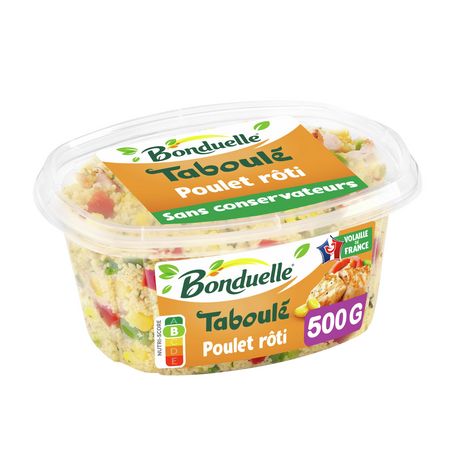 Découvrez le Taboulé Poulet Bonduelle 500g, une semoule fine origine France, sans conservateur et encore plus de plaisir avec du poulet gourmand origine France !