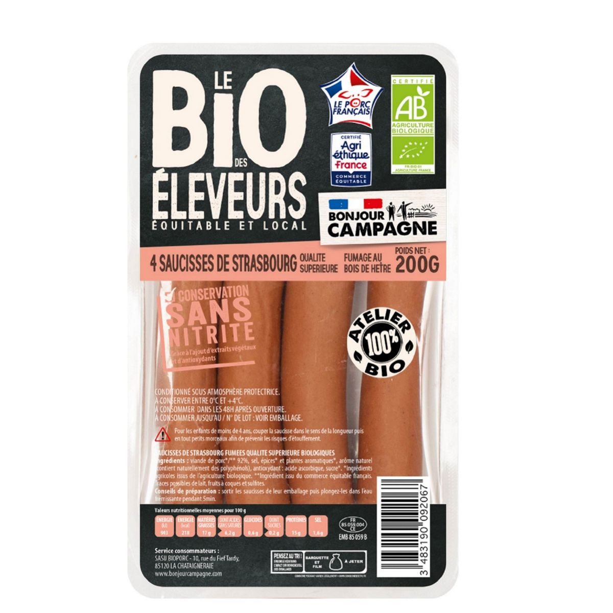 SAUCISSE DE STRASBOURG X4 BIO CSN 200G