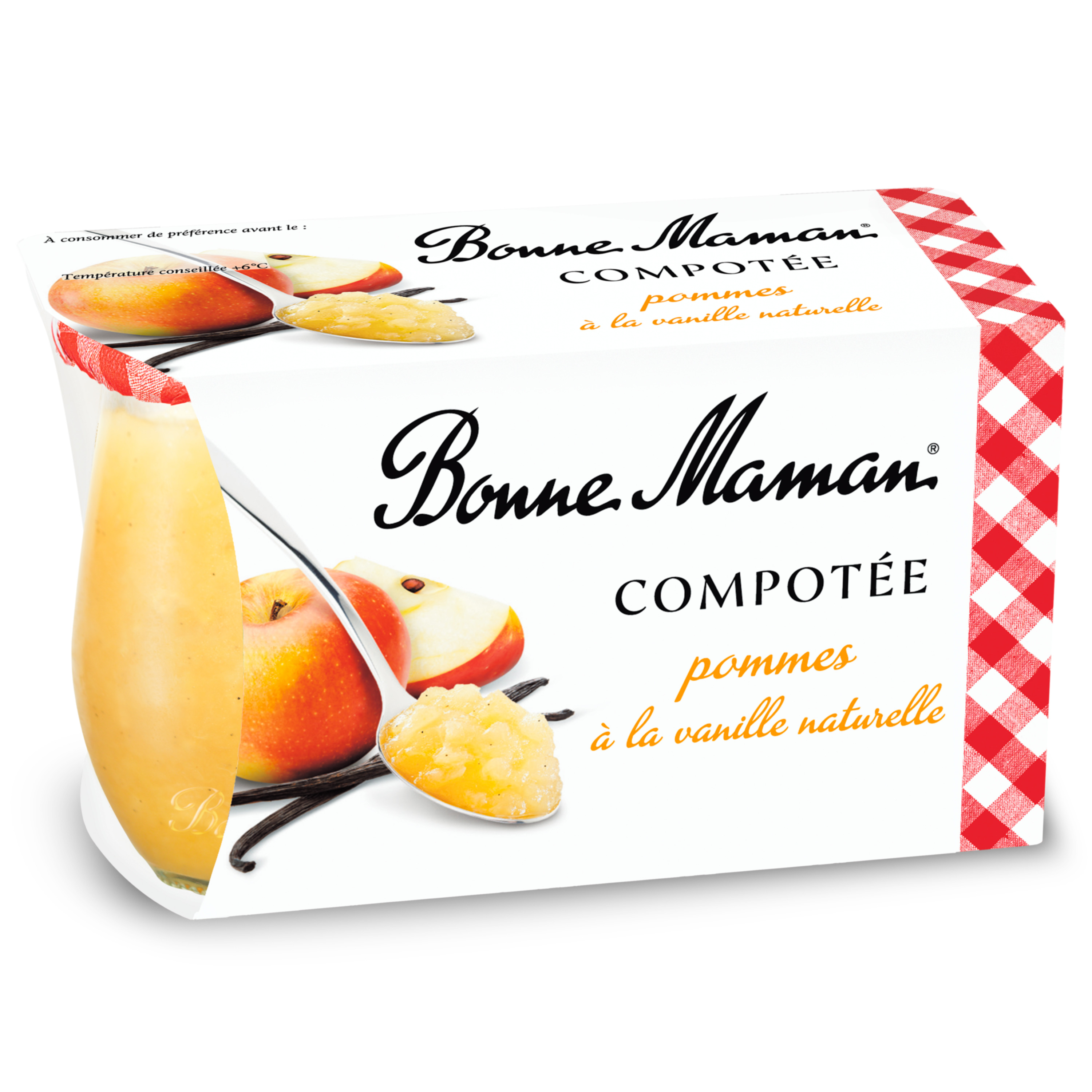 D'une grande délicatesse, les Compotées de Bonne Maman marient de façon inédite des fruits des vergers, des fruits rouges, des épices, des notes florales : les meilleurs ingrédients, pour une gourmandise tout en douceur. Compote de Pommes à la Vanille allégée en sucres, 30% de sucres en moins qu'une compote traditionnelle.