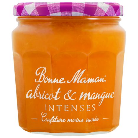 Grâce à son inimitable savoir-faire et à la qualité de ses ingrédients, Bonne Maman vous offre le meilleur à travers des recettes authentiques et gourmandes, pour votre plus grand plaisir, tout simplement. Bonne Maman a confectionné ses nouvelles recettes de confitures intenses en fruits et moins sucrées. Elle a sélectionné pour vous les plus beaux fruits et juste ce qu'il faut de sucre pour révéler toute leur richesse de goût. Une expérience encore plus intense en fruits grâce à une cuisson plus douce et plus courte, et à des morceaux toujours aussi généreux et fondants pour se faire plaisir tout simplement !