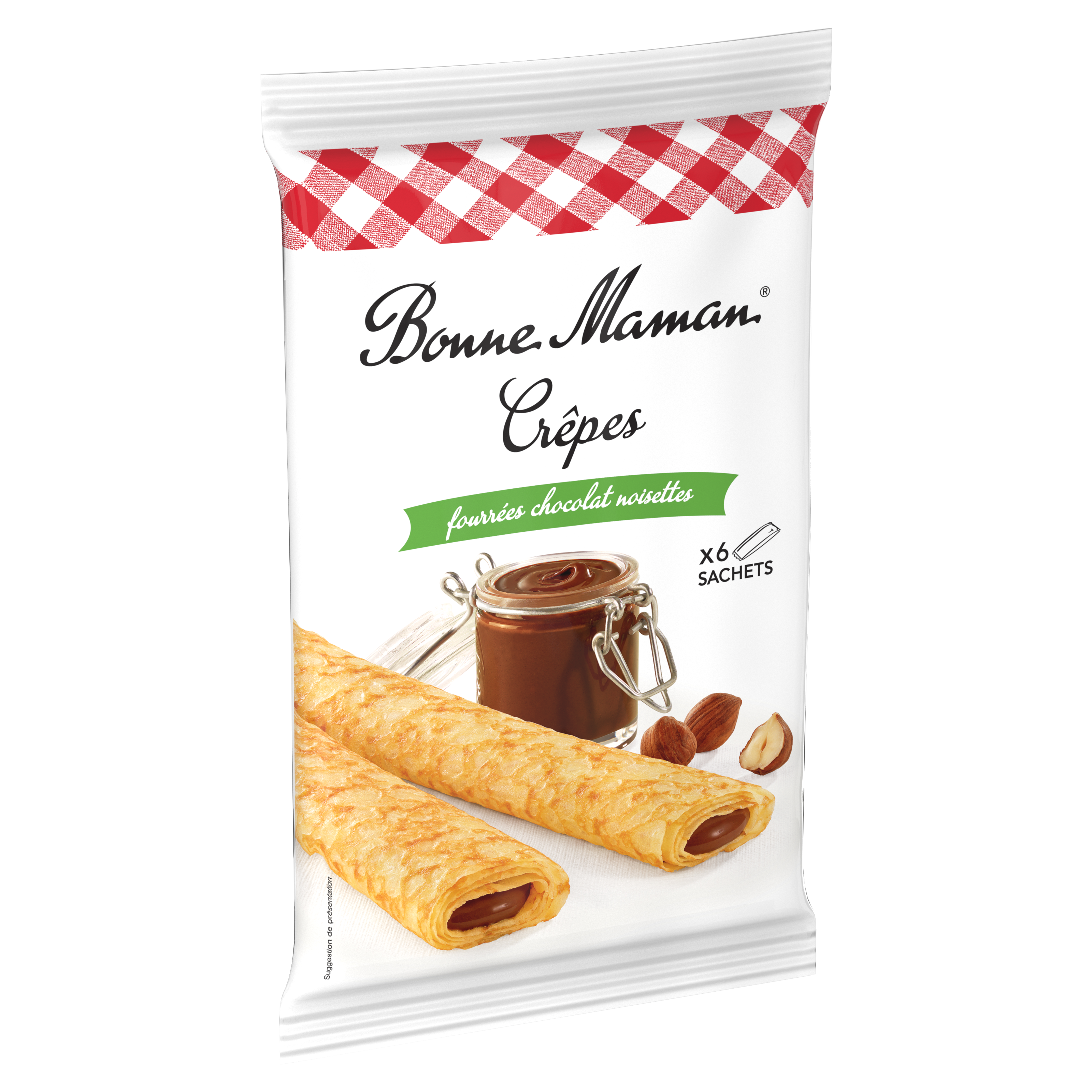 Bonne Maman a réalisé pour vous ces délicieuses crêpes moelleuses granies d'un fourrage chocolat noisette fondant. Le sachet contient 6 crêpes dans un emballage fraicheur afin de préserver leur saveur inimitable. 6 Crêpes au fourrage noisettes - chocolat