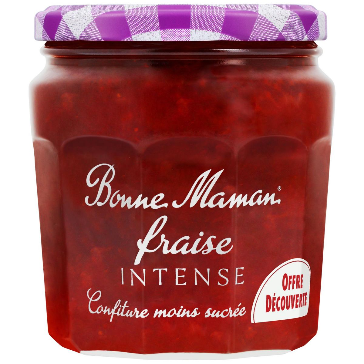 Grâce à son inimitable savoir-faire et à la qualité de ses ingrédients, Bonne Maman vous offre le meilleur de la confiture à travers des recettes authentiques et gourmandes, pour votre plus grand plaisir, tout simplement. Bonne Maman a confectionné ses nouvelles recettes de confitures intenses en fruits et moins sucrées. Elle a sélectionné pour vous les plus beaux fruits et juste ce qu'il faut de sucre pour révéler toute leur richesse de goût. Une expérience encore plus intense en fruits grâce à une cuisson douce et courte, et à des morceaux de fruits toujours plus généreux et fondants pour se faire plaisir tout simplement !