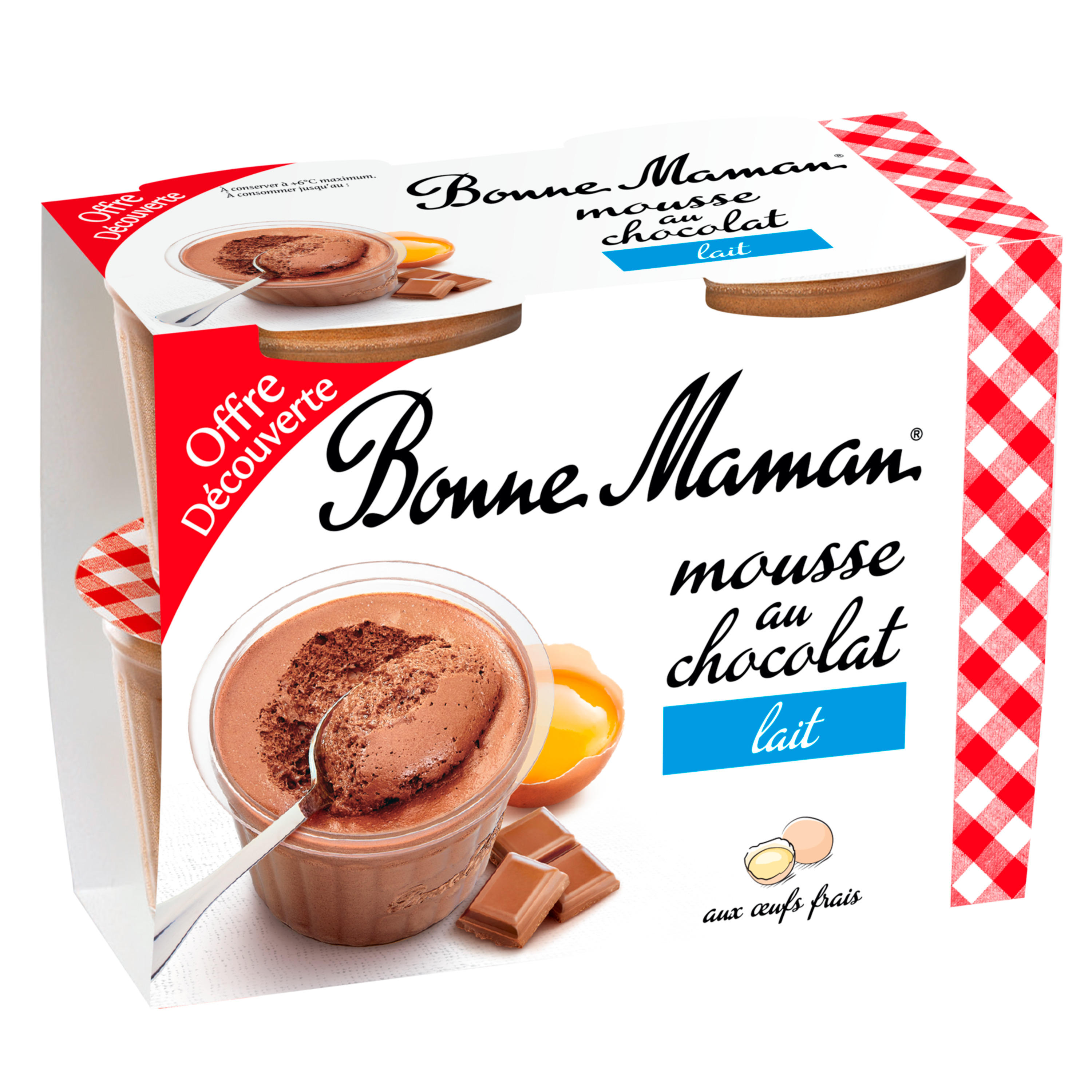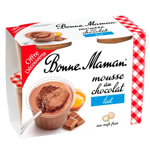 Grâce à son inimitable savoir-faire et à la qualité de ses ingrédients, Bonne Maman vous offre le meilleur, pour votre plus grand plaisir, tout simplement. Plongez dans une mousse légère et délicate et succombez à la douceur du chocolat au lait.