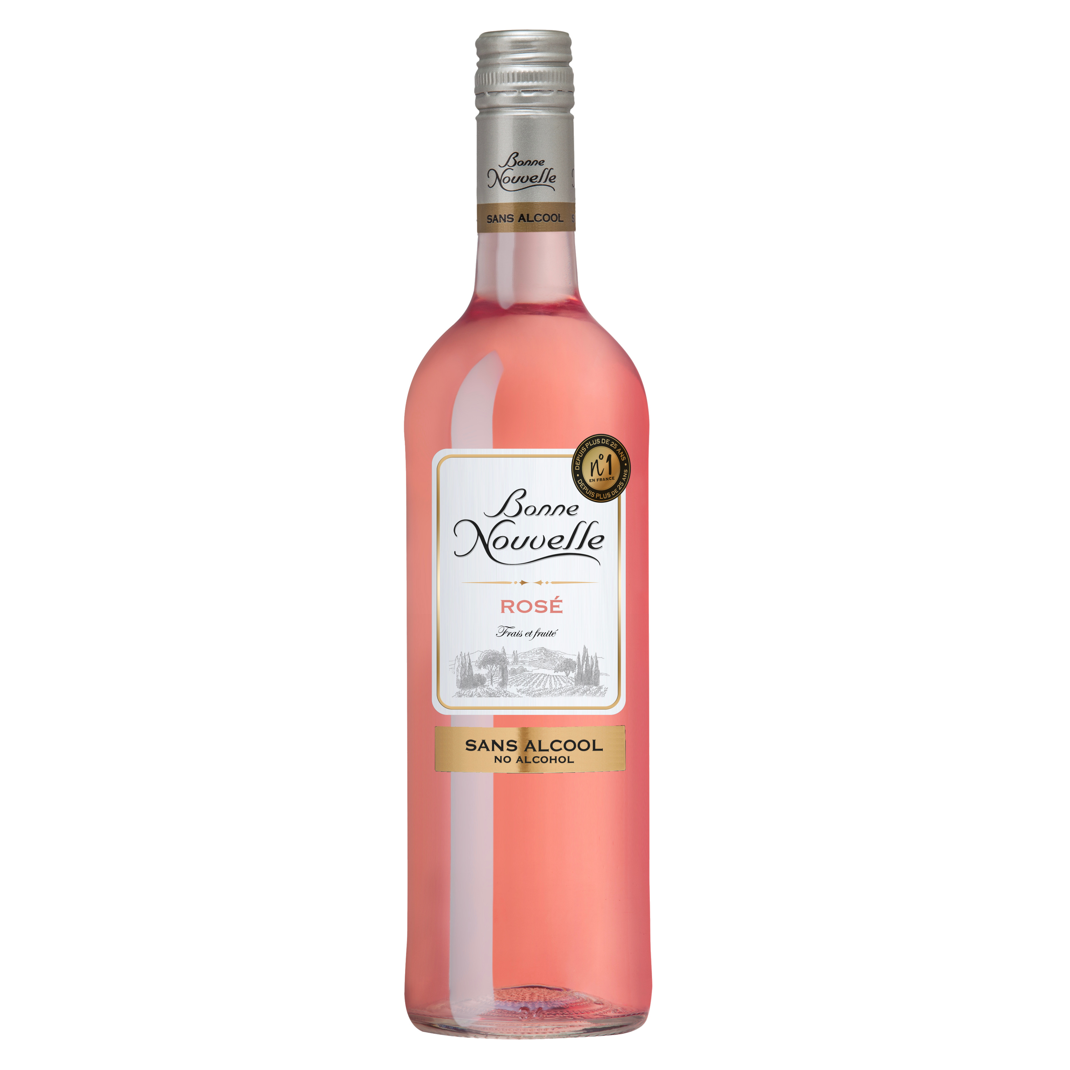 Bonne Nouvelle rosé sans alcool , boisson fermentée désalcoolisée à base de raisin 75cl