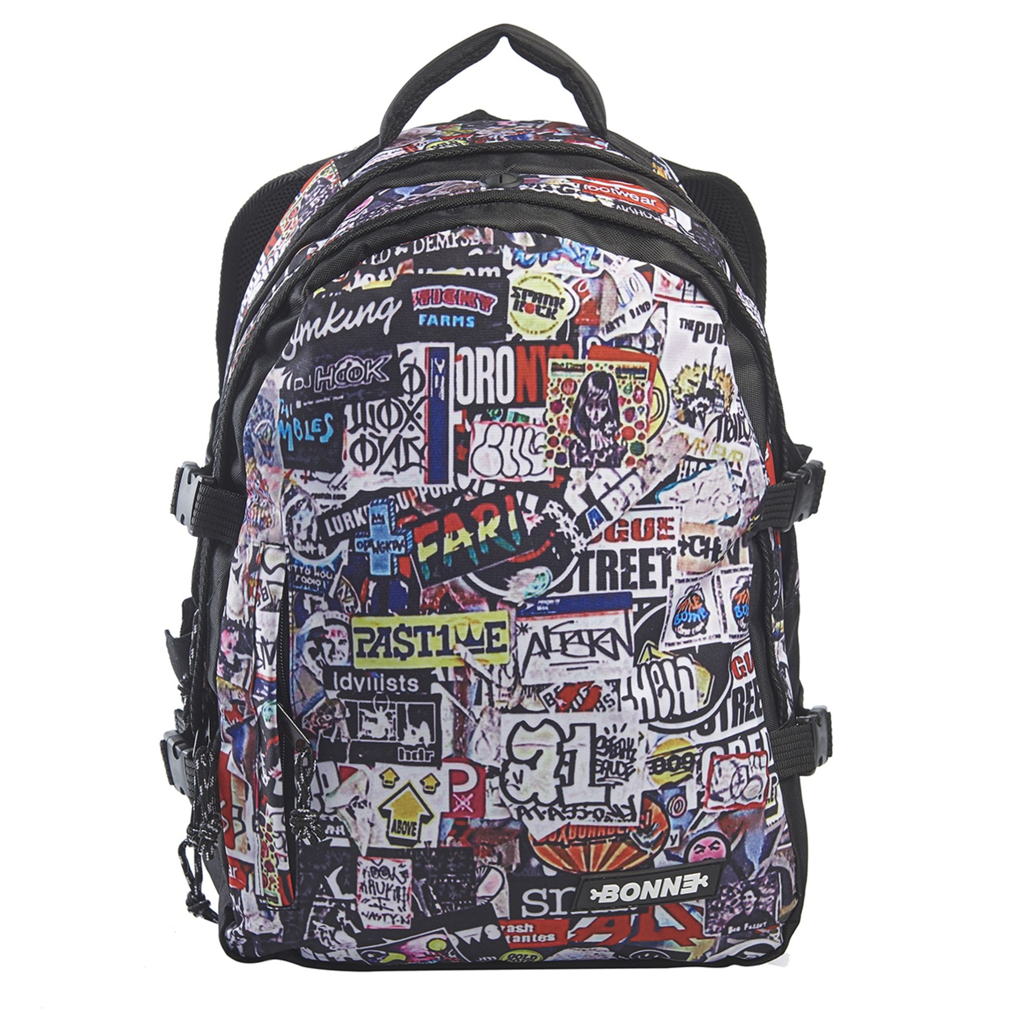 Sac à dos EVOLUTION, Design exclusif, 43cm polyester 600D/Induction PVC, résistant à l'eau, impression graphique textile de qualité exceptionnelle, triple coutures sur tous les points de fabrication, 2 compartiments, intérieur compartimenté : multi poches dont poche moussée, renforcée pour ordinateur portable ou tablette, fente pour écouteurs,1 poche zippée en façade, poignée portage main moussée, dos du sac ergonomique, bretelles en mousse de 1cm d'épaisseur, pour un meilleur confort, sangles sur le côté pour compacter le volume, doublure intégrale (43x32,5x15cm : 0.920kg)