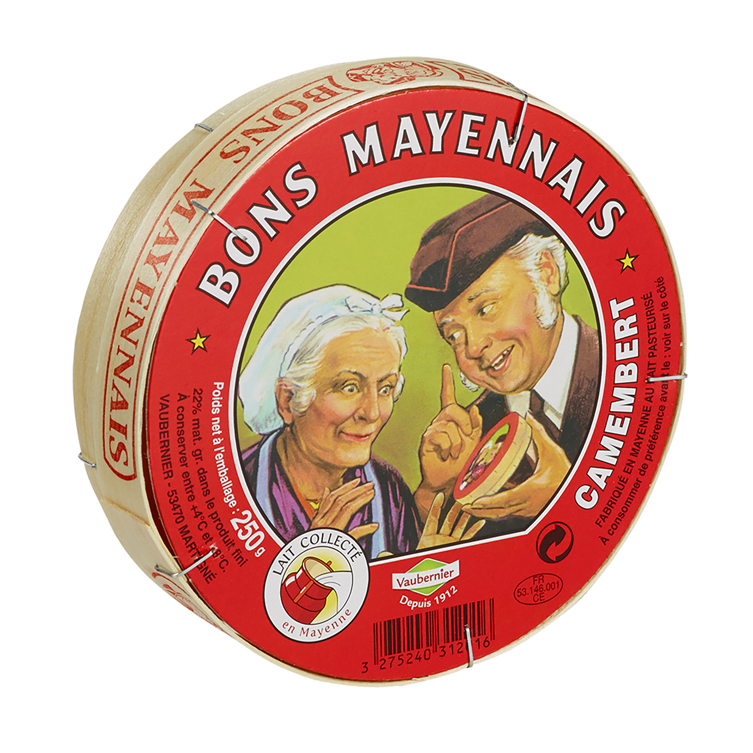 La renommée de notre camembert vient de sa recette traditionnelle et authentique, qui n'a pas changé depuis plus de 100 ans ! Il est fabriqué à base de lait pasteurisé collecté en Mayenne dans un rayon de 40 km autour de la fromagerie. Fier de notre terroir, nous travaillons avec des producteurs laitiers partenaires qui nous fournissent du bon lait frais toutes les 48h. Les éleveurs laissent leurs vaches aux pâturages en moyenne plus de 6 mois par an. Un bon fromage provient d'abord d'un bon lait ! D'ailleurs, il faudra environ 2 litres de lait pour fabriquer un camembert Bons Mayennais.