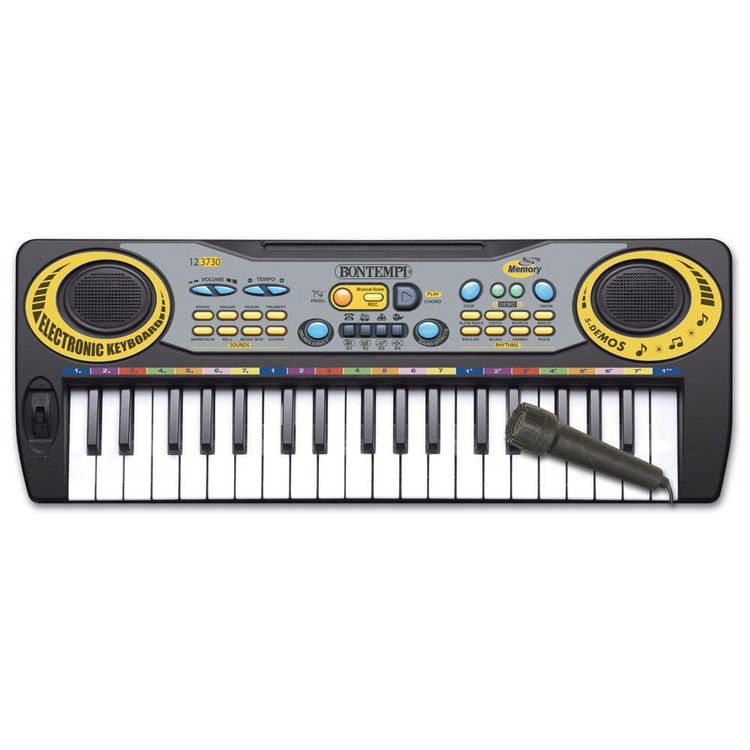 Votre enfant va devenir une vraie Rock Star ! Découvrez ce superbe clavier électronique de la marque Bontempi accessible dès 3 ans.Clavier électronique : - 37 midi touches (DO-DO) - 8 Sons - 8 Rythmes - 5 chansons préenregistrées - 4 sons de batterie - 4 variations rythmiques- 4 effets sonores - Vou