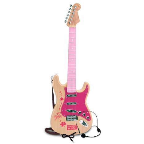 Guitare Rock électronique - 6 cordes métalliques avec sons rock au toucher - 8 démos - Bandoulière - Prise de connexion à un lecteur MP3 (câble inclus) - Prise pour micro-casque (fourni). Alim: 3 piles de 1,5V R6/AA (non fournies) Age minimum : 5 ans