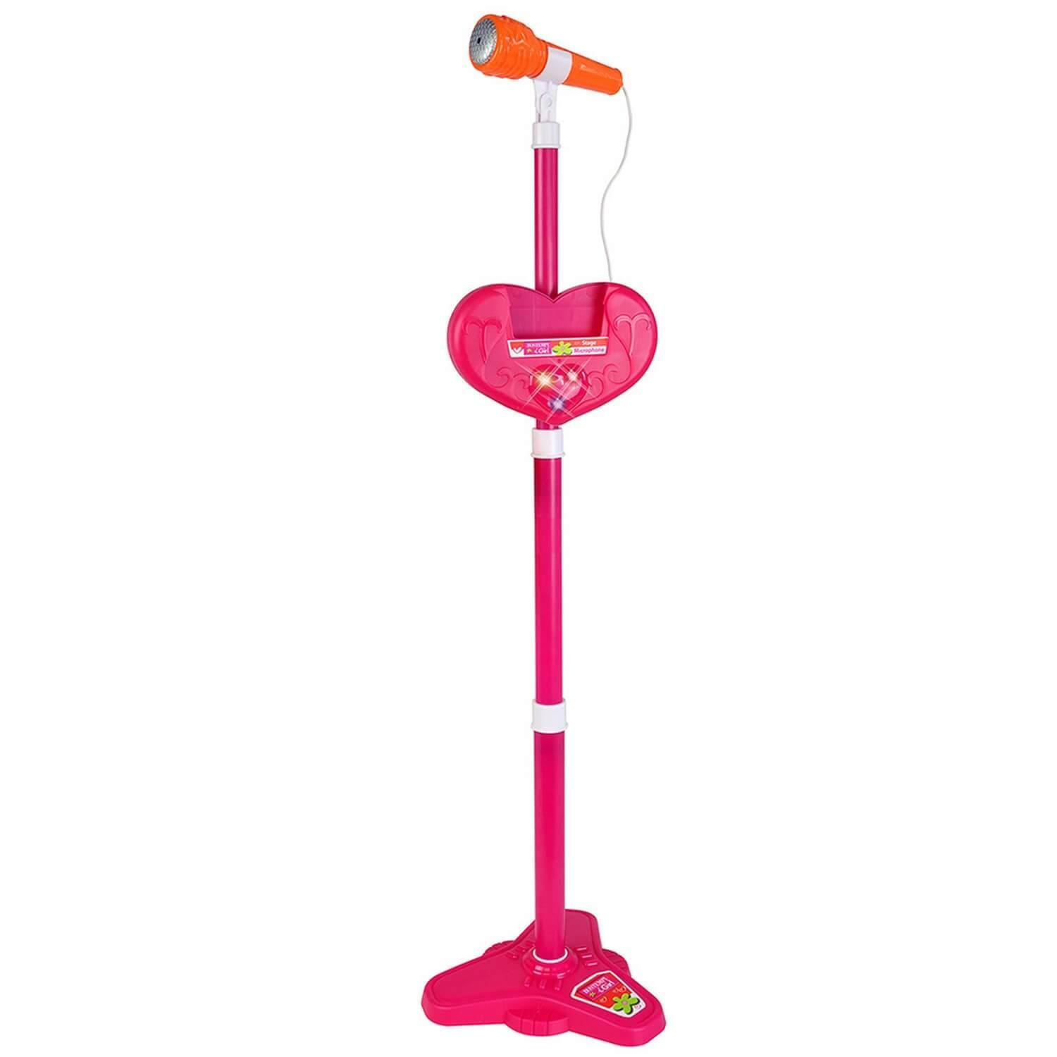 courageux et lancez vous ! Fonctionne avec 3 piles à 1,5V R6/AA (non founies).Contenu :- 1 micro sur piedConvient pour des enfants à partir de 3 ans.Dimensions : 21 x 21 x 100 cm Age minimum : 3 ans