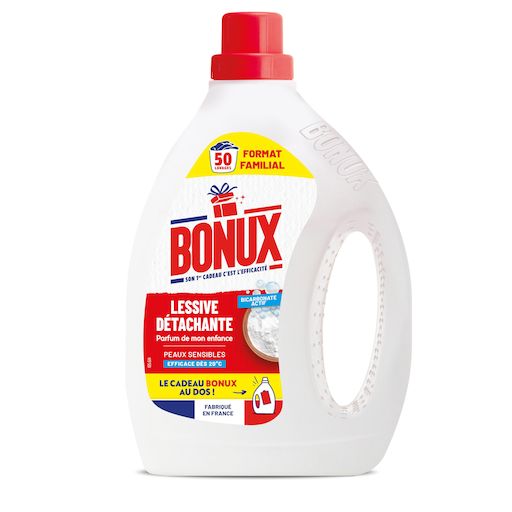 La lessive liquide Bonux L'Original est fabriquée en France et est idéale pour le linge de toute la famille. Elle offre une action nettoyante ultra- efficace et est adaptée aux peaux les plus sensibles. Parfum longue durée aux notes subtilement fraîches !