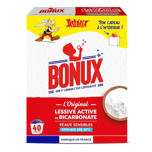 "La lessive en poudre Bonux L'Original est idéale pour un linge éclatant de blancheur. Son action détachante et sa formule active au bicarbonate de soude vous garantit un lavage impeccable ! Sans conservateurs, elle est parfaitement adaptée aux peaux même les plus sensibles.