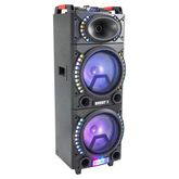 500 W max - 2 haut parleurs 25 cm- 2 tweeters 7.5 cm - Entrées USB, TF et ligne - 2 entrées micro Karaoke - Fonction enregistrement - Animation LED des boomers - Contrôle graves aigus - 1 micro filaire - Télécommande - 2 roulettes