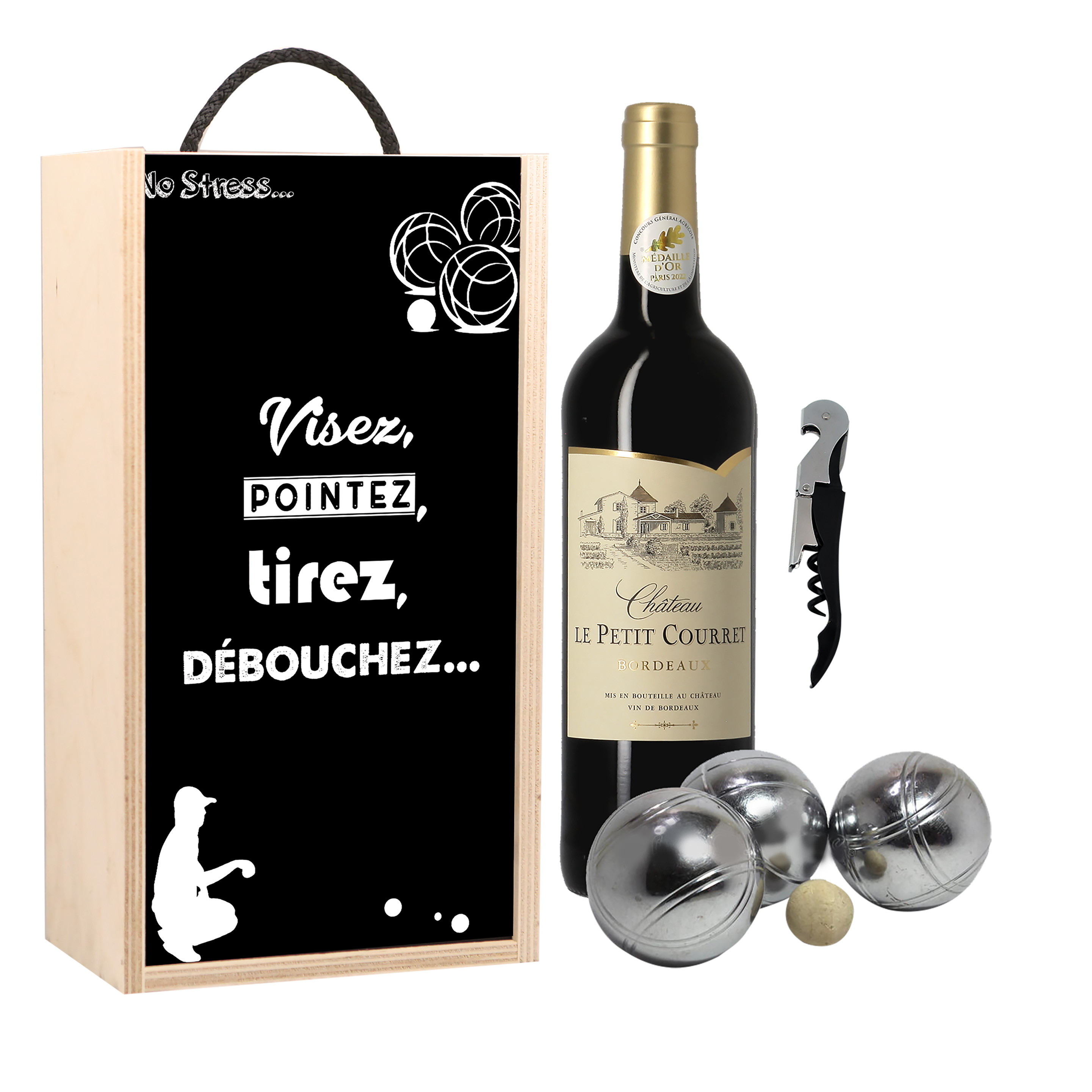 Bordeaux Château Le petit Courret rouge avec coffret le bouliste