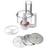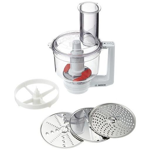 Bosch MUZ5MM1 Le multi-mixer MUZ5MM1 de BOSCH est livré avec 3 disques pour vous permettre de râper, émincer et concasser en différentes tailles tous vos légumes. Il peut également servir pour piler la glace, les fruits et légumes surgelés.