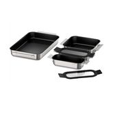 2 x Flex Pan taille S avec couvercle en verre : 30 x 11 cm (haut avec poignées) / 20 x 7,5 cm (bas).