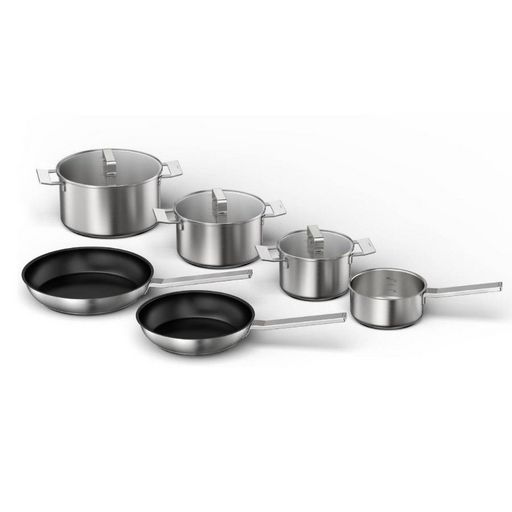 Bosch HEZ9SE060 Batterie de cuisine 6 pièces Bosch HEZ9SE060. Ensemble d'ustensiles de cuisson de qualité supérieure convenant à toutes les plaques électriques, y compris l'induction. - Type de produit : Batterie de cuisine.Type : Casseroles, poêles et couvercles.Forme : ronde.Matériaux : Acier inox