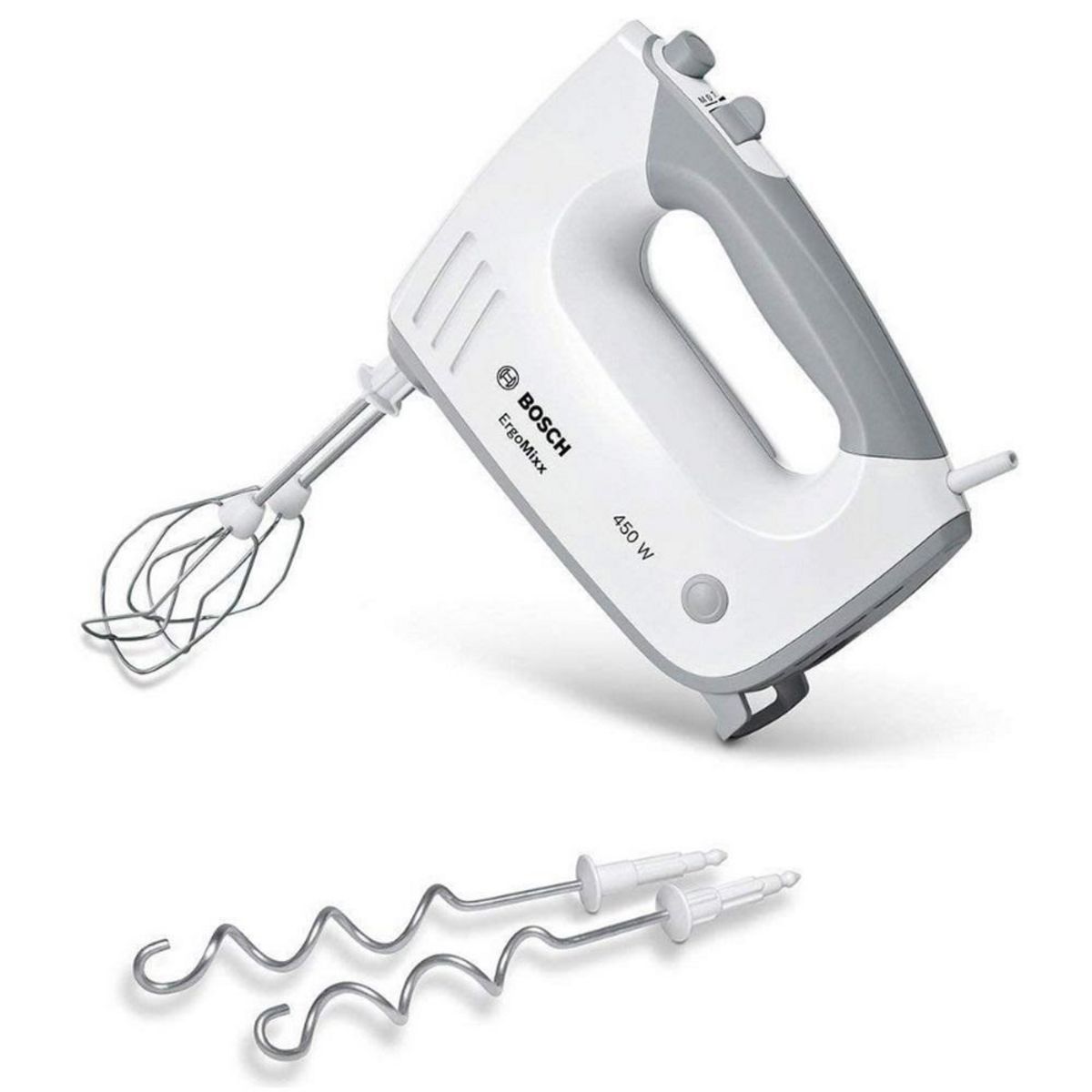 Bosch MFQ36400 Ce puissant batteur ErgoMixx MFQ36400 de Bosch s'adapte parfaitement à votre main - avec un revêtement antidérapant soft-touch et doux au toucher. Puissant moteur de 450 watts : assure d'excellents résultats pour mixer, mélanger, pétrir et toute autre tâche. 5 vitesses + turbo : contr