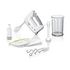 Accessoires inclus : 2 fouets inox, 2 crochets pétrisseurs inox, pied mixeur plongeant, pied plastique, 3 sacs réutilisables de 1,2 L et 3 sacs réutilisables de 3,8 L.