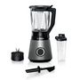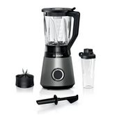 Bosch MMB6174S Blender VitaPower Série 4 Bosch MMB6174S. Préparez sans effort smoothies, laits végétaux, beurre de cacahuètes et bien d'autres préparations ! Bol en verre Thermosafe gradué 1,5 L pour mixer aussi bien des soupes chaudes que des boissons fraîches. 2 vitesses + mode Turbo pour s'adapter à chaque type de préparation. Système ProPerformance : les smoothies ont une texture onctueuse même en utilisant des fruits congelés et des ingrédients durs. Moteur puissant avec 30 000 tours par minutes. Gourde ToGo ultra-résistante 0.6 L en plastique Tritan avec bouchon étanche. Mixez directement dans la gourde ToGo anti-fuite et profitez de votre smoothie lorsque vous êtes en route !