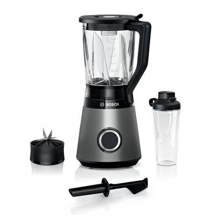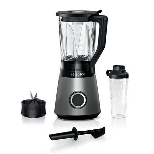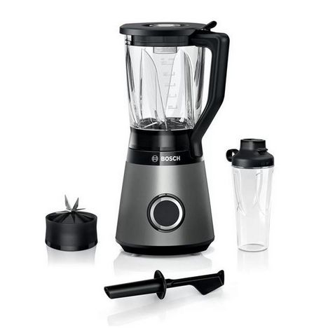 Bosch MMB6174S Blender VitaPower Série 4 Bosch MMB6174S. Préparez sans effort smoothies, laits végétaux, beurre de cacahuètes et bien d'autres préparations ! Bol en verre Thermosafe gradué 1,5 L pour mixer aussi bien des soupes chaudes que des boissons fraîches. 2 vitesses + mode Turbo pour s'adapte