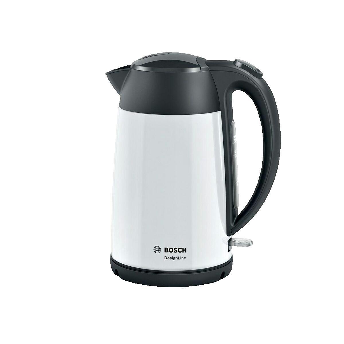 La bouilloire électrique Bosch TWK3P421 offre une capacité de 1,7 litre et une puissance de 2400 W. Elle est équipée d'un système de protection contre la surchauffe, d'un indicateur de niveau d'eau et d'un filtre anti-calcaire pour assurer une eau de qualité. Son design en acier inoxydable avec une