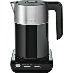 [Cet avis a été recueilli en réponse à une offre.] Gloablement satisfait de cette bouilloire, l'eau monte très vite en température, assez silencieuse, belle. Cependant, quelques pistes d'améliorations: -Le Bip au démarrage est embetant -ouverture du courvecle par bouton directement sur la poignée et non sur le dessus -La cuve est assez imposante -la température se remet toujours sur 100°C