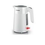 Bosch TWK2M161 La bouilloire Bosch TWK2M161 avec une manipulation pratique et un indicateur de niveau. Le design attrayant avec ses reflets mats et brillants donne de la vie à la cuisine. Ouverture du couvercle avec une seule main. Indicateur de tasse : économiser de l'énergie et du temps en ne fais