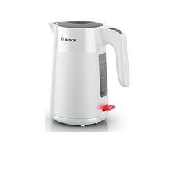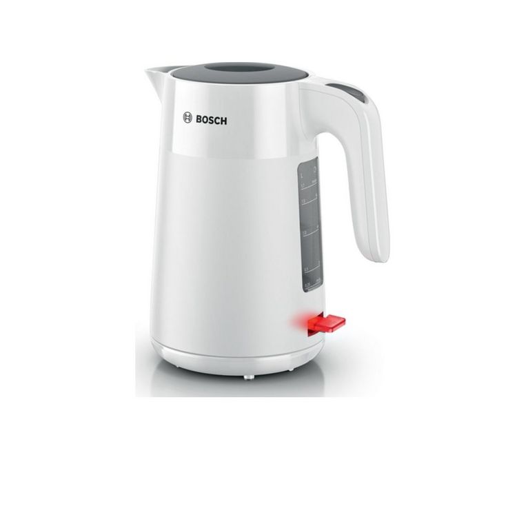 Bosch TWK2M161 La bouilloire Bosch TWK2M161 avec une manipulation pratique et un indicateur de niveau. Le design attrayant avec ses reflets mats et brillants donne de la vie à la cuisine. Ouverture du couvercle avec une seule main. Indicateur de tasse : économiser de l'énergie et du temps en ne faisant bouillir que la quantité dont vous avez besoin. Filtre anti-calcaire : amovible et facile à nettoyer, il empêche le calcaire de s'infiltrer dans vos boissons. Niveau d'eau facile à lire : Chauffez que la quantité d'eau requise. Triple sécurité : Arrêt automatique à l'ébullition, protection contre la surchauffe et arrêt lors du soulèvement du socle.