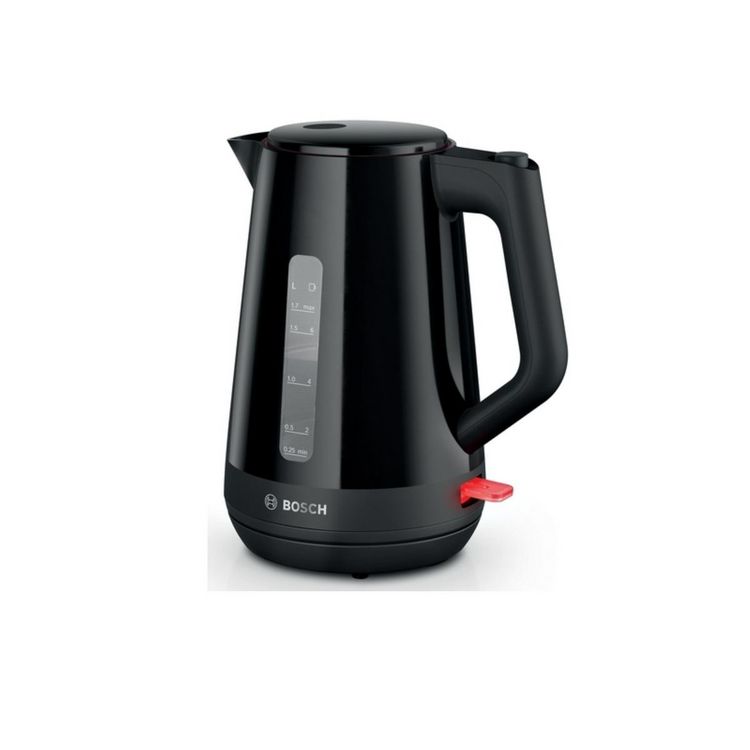 Bosch TWK1M123 La bouilloire Bosch TWK1M123 avec une manipulation pratique et un indicateur de niveau. Le design attrayant avec ses reflets mats et brillants donne de la vie à la cuisine. Ouverture du couvercle avec une seule main. Indicateur de tasse : économiser de l'énergie et du temps en ne faisant bouillir que la quantité dont vous avez besoin. Filtre anti-calcaire : amovible et facile à nettoyer, il empêche le calcaire de s'infiltrer dans vos boissons. Niveau d'eau facile à lire : Chauffez que la quantité d'eau requise. Triple sécurité : Arrêt automatique à l'ébullition, protection contre la surchauffe et arrêt lors du soulèvement du socle.